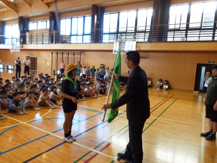 2018年6月7日 09時36分緑の少年団の結団式を行いました。緑の少年団は、県内に300団以上あり、未来のため、地域のため、周りの人々のために活動しています。