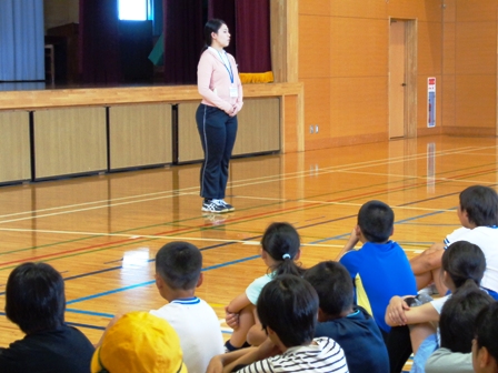 教育実習終わる 湯浅さん 2018年6月7日 09時49分 先月、7日から本校で教育実習をしていた湯浅杏香さんが本日をもって実習を終えます。伊藤養護教諭の指導の下、とてもまじめに取り組み、貴重な体験となったことと思います。「みなさん、おげんきで...」とあいさつする湯浅さん。