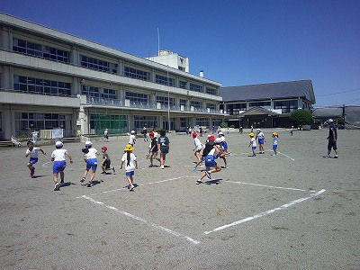縦割り遊び 2024年6月21日 08時30分 今週水曜日の昼活動は、1~6年生までが一緒の班に分かれて活動する縦割り遊びでした。 ドッチボール、田んぼの田(米)、小鳥のお引っ越しなどの遊びを仲良く楽しんでいました。