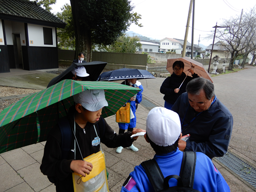 パラパラと小雨が降ったりやんだりの天気でのスタートでした。制限時間は2時間。チェックポイントでクイズに答えながら進みます。