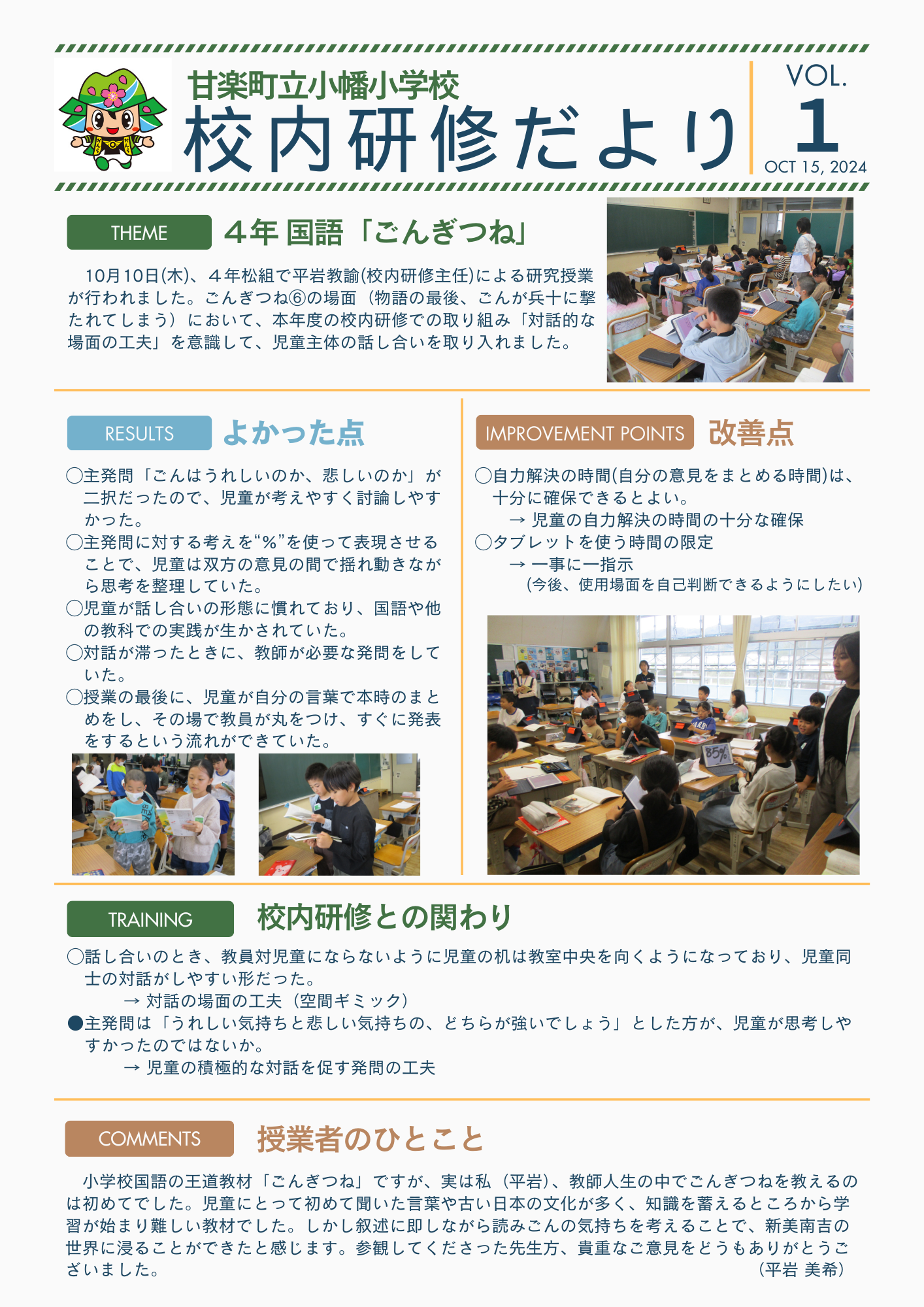 2024年10月10日 14時27分10月10日4時間目、4年国語「ごんぎつね」の研究授業を行いました。
