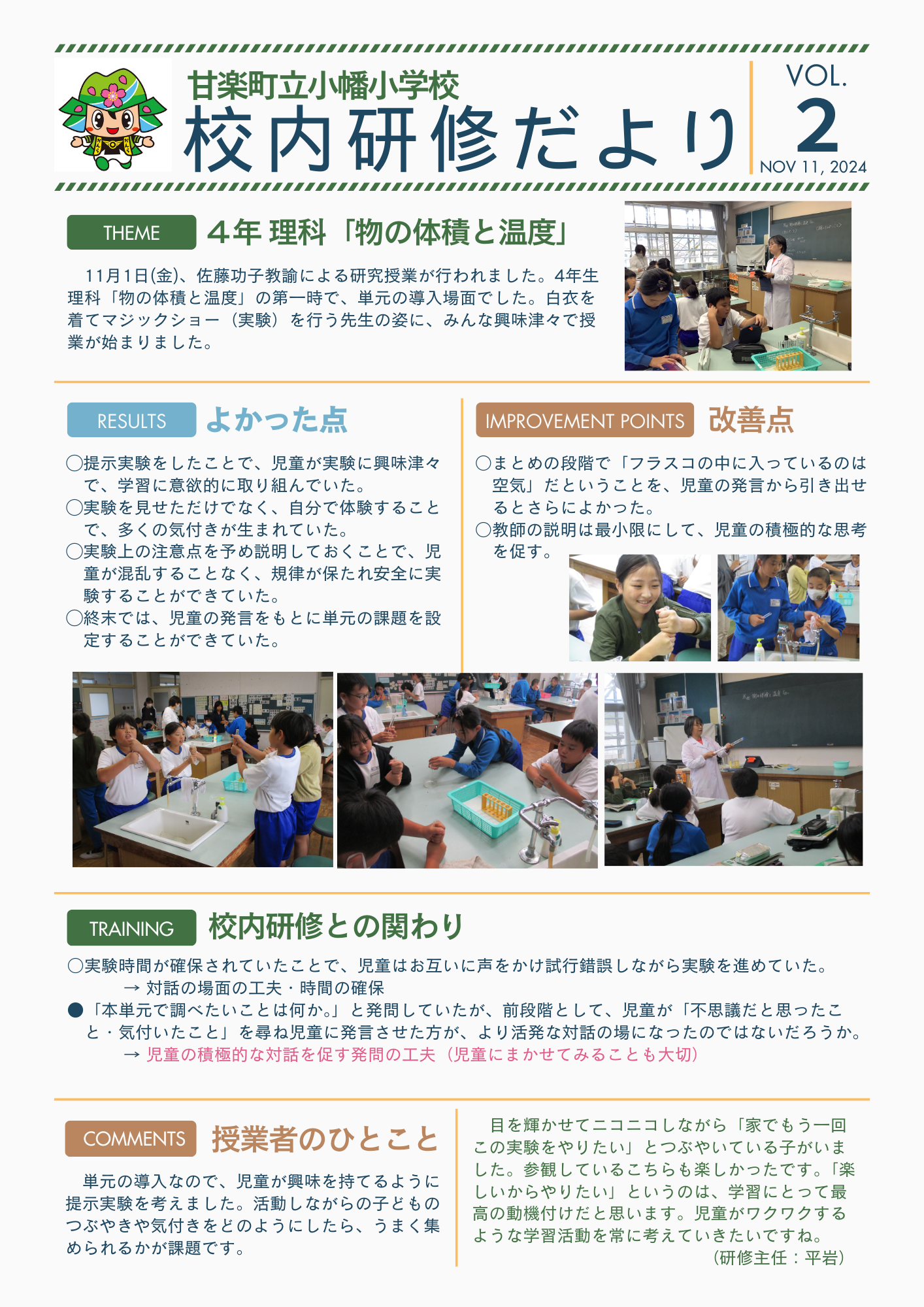 2024年11月1日 12時25分11月1日4時間目、4年理科「ものの体積と温度」で研究授業を行いました。