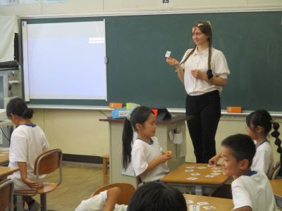 その後、学生たちは英語の童謡を楽しんだ後、数字カルタで遊びました。